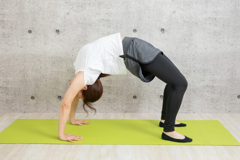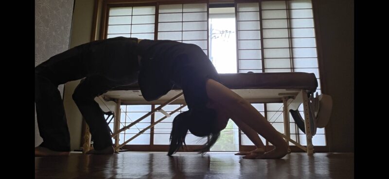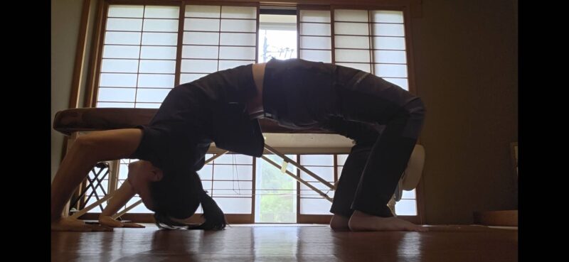 早速ネットでブリッジのコツを調べ、肩関節、お腹、胸椎、脚をストレッチ。