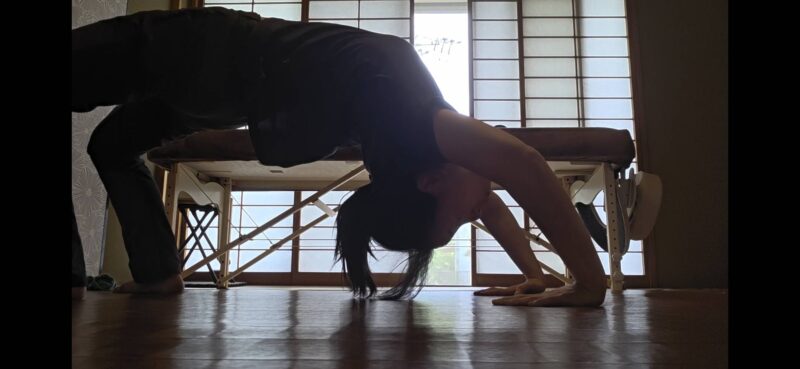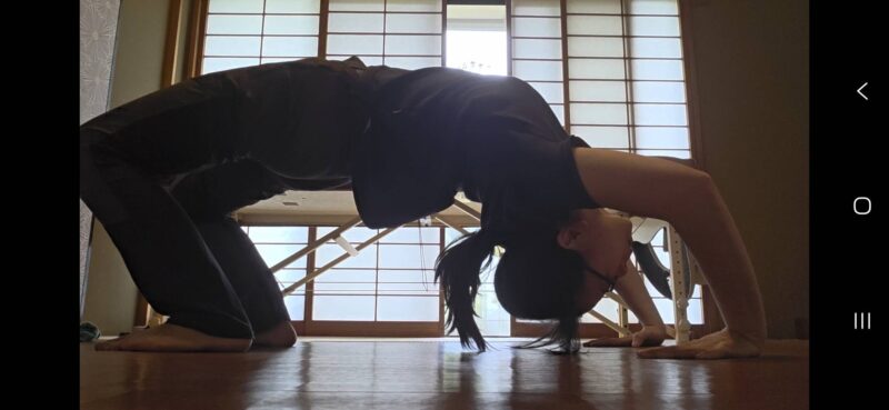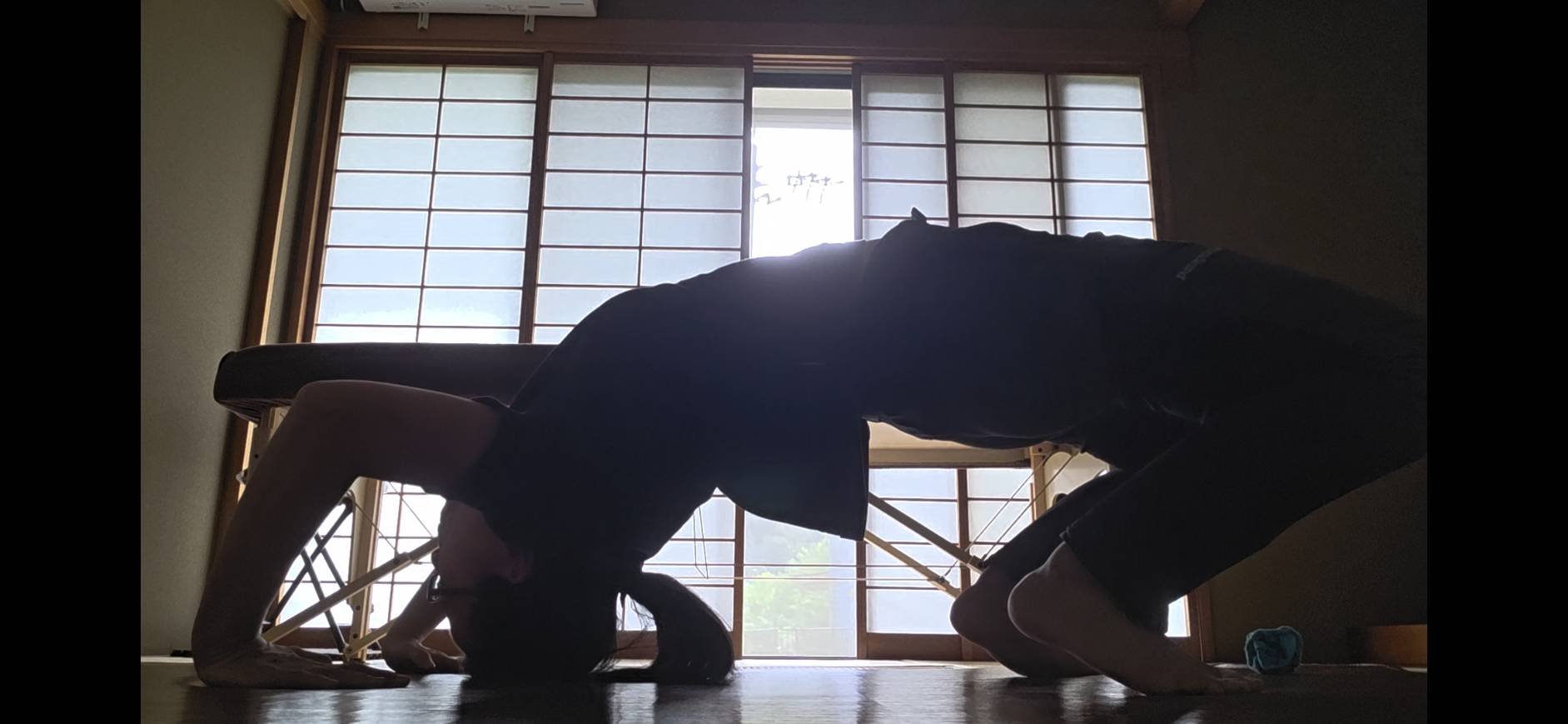 倒立もできたことないし、壁倒立もできなかったし、三角倒立は3度ほどできたことがあるけど、それっきり。20代後半にヨガをやっていて、その時一回だけブリッジができたことがある。それだけです。