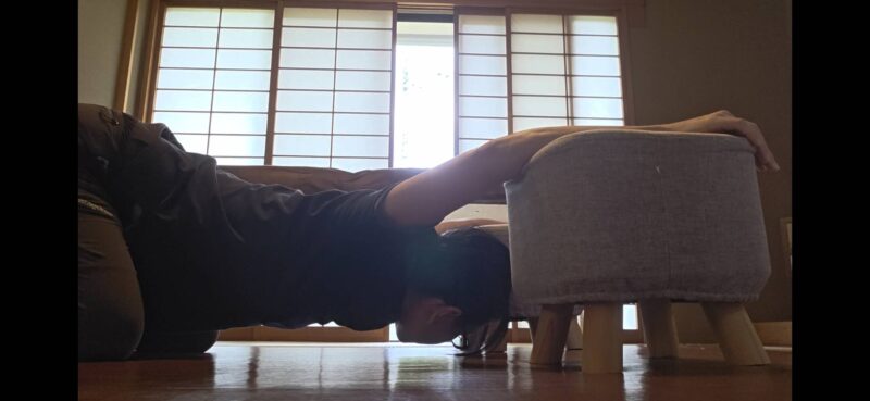 仕方ないので椅子にのけぞって寝て、手を着地してみる…というのもやってみたけど、できない!